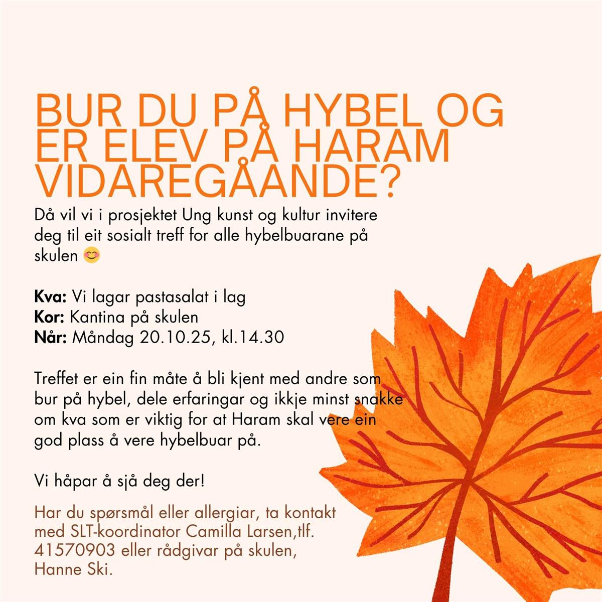 Treffet er ein fin måte å bli kjent med andre som bur på hybel, ein plass å dele erfaringar og ikkje minst snakke om kva som er viktig for at Haram, og Brattvåg, skal vere ein god plass å vere hybelbuar.